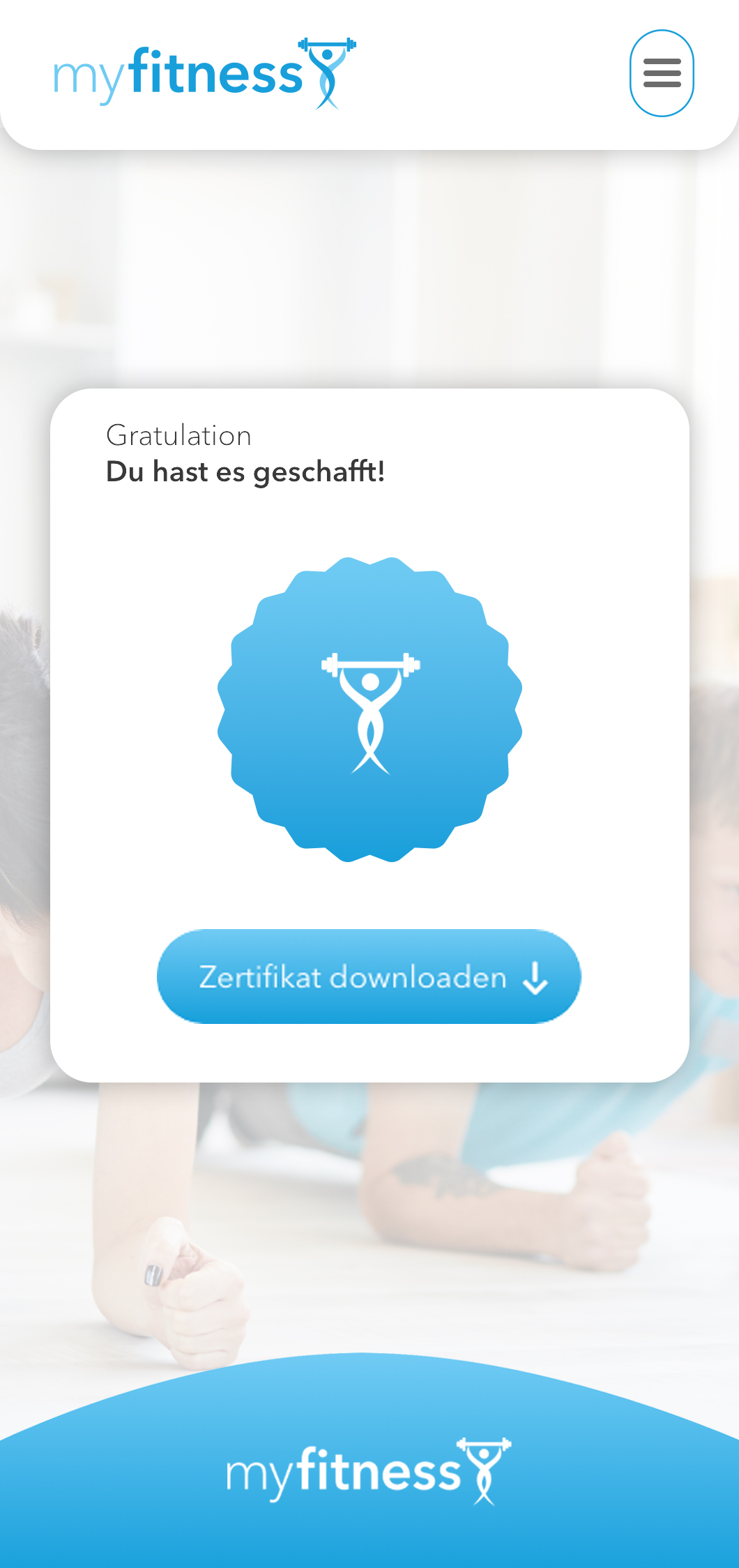 myfitness wird bis zu 100% von gesetzlichen Krankenkassen bezuschusst. Einfach Zertifikat am Ende des Kurses ausdrucken und einreichen.